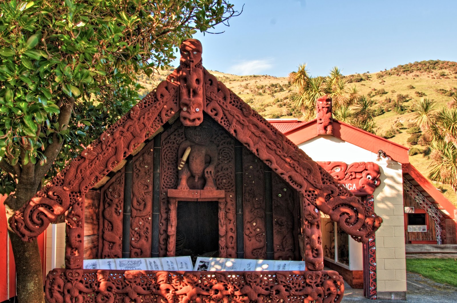 V Okains Bay je také Maori and Colonial Museum, které návštěvníkům představuje maorské a pozdější koloniální časy na Banksově poloostrově. Konečně jsme si tak mohli pořádně prohlédnout maorské shromažďovací domy, rozsáhlou expozixi mapující maorský život a umění a také stále funkční a používané kánoe waka. Každý rok na Waitangi day, jsou tyto kánoe po kolejích dovezeny na hladinu, zasednou do nich polonazí potetovaní maoři a pádlují po Oparara Stream až k ústí této řeky do moře.