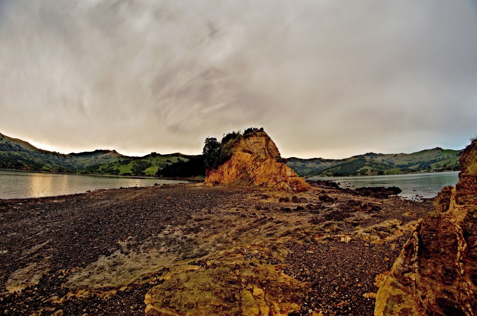 Každého, kdo jede do přístavu Akaroa, zaujme malý výběžek ve tvaru velryby, který tvoří dominantu celého zálivu. Je to vlastně takový poloostrov na poloostrově. Jméno této přírodní zajímavosti je Onawe Pa a odehrála se na ní jedna z významných událostí novodobých maorských dějin. Banksův poloostrov byl totiž až do 20. let 19. století osídlen vzkvétajícím maorským kmenem Ngai Tahu, kterému poskytoval bezpečné útočiště. V roce 1831 byl malý poloostrov Onawe dějištěm bratrovražedného masakru mezi náčelníky Te Rauparaha a Kaiapoi, ve kterém bylo na jeho půdě zabito 1200 bojovníků a krev tohoto masakru na několik dnů zakalila okolní vody.  Pro vstup na toto místo musíte mít povolení přímo od hodnostářů kmene Ngai Tahu, to jsme ale jaksi nevěděli a protože nás toto místo zdálky doslova fascinovalo, a přestože nám počasí moc nepřálo, rozhodli jsme se ho prozkoumat zblízka.