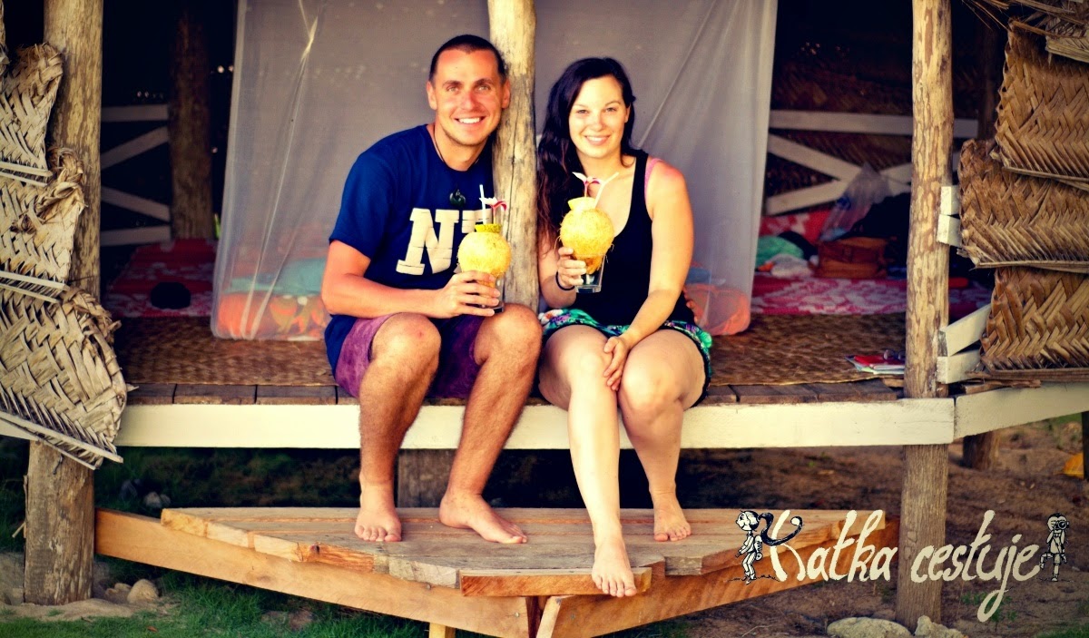 Tady si objednáváme u našich hostitelů vytouženou piňacoládu přímo z kokosu a abychom zapili žal, poroučíme si rovnou další kolo. Tahle alkoholická dobrůtka nám trochu spraví náladu a tak příjemně opiňakoládovaní pozorujeme večerní představení na pláži. V hlavních rolích dnes účinkují krabíci, kteří se s ubývajícím sluníčkem odvažují vystrčit klepítka ze svých písečných nor a proběhnout se pro něco k snědku. Očividně se ale neradi fotí a tak Tom tráví těžké fotografické chvilky číháním na chvilkovou nepozornost těchto plážových potvůrek, které jsou při zalízaní rychlejší než ryby schovávající se pod kameny.