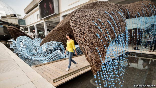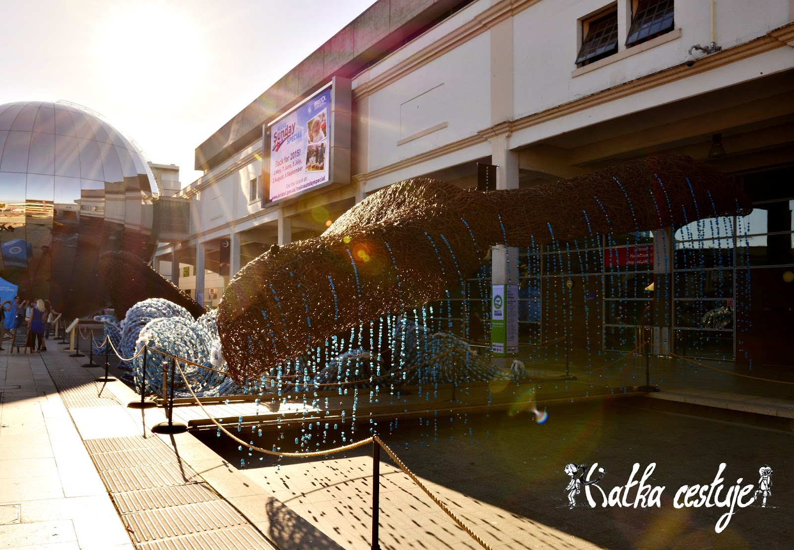 Kdo by ale čekal monstrózní akvárium, bude zklamaný. Velryby jsou totiž upleteny ze sommersetské vrby a dovádějí ve vlnách vyrobených ze 70 000 plastových lahví. Bristol totiž letos drží zelený titul „European Green Capital“, který převzal po loňském Copenhagenu a tyto obří sochy jsou jedním z klíčových ekologických projektů tohoto roku.