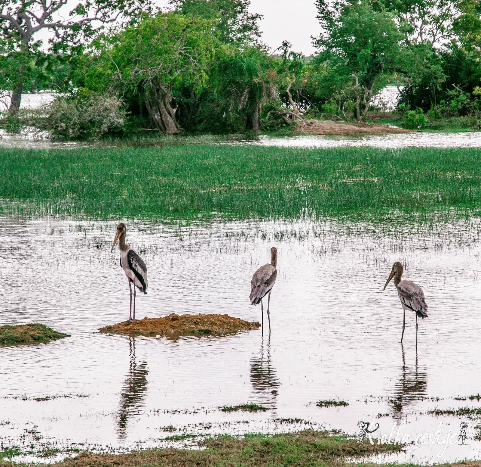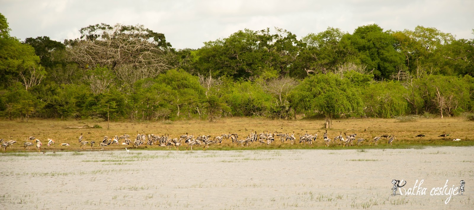 Pro ornitology musí být Srí Lanka hotový ráj. Žije jich tu totiž více než 250 druhů a mnohé z nich nenajdete nikde jinde na světě. My dneska máme tu čest pozorovat volavky, čejky a nejvíce růžové čápy, jejichž název se mi nepovedlo dohledat v češtině. Anglicky se jmenují painted stork a latinsky potom mycteria leucocephala.