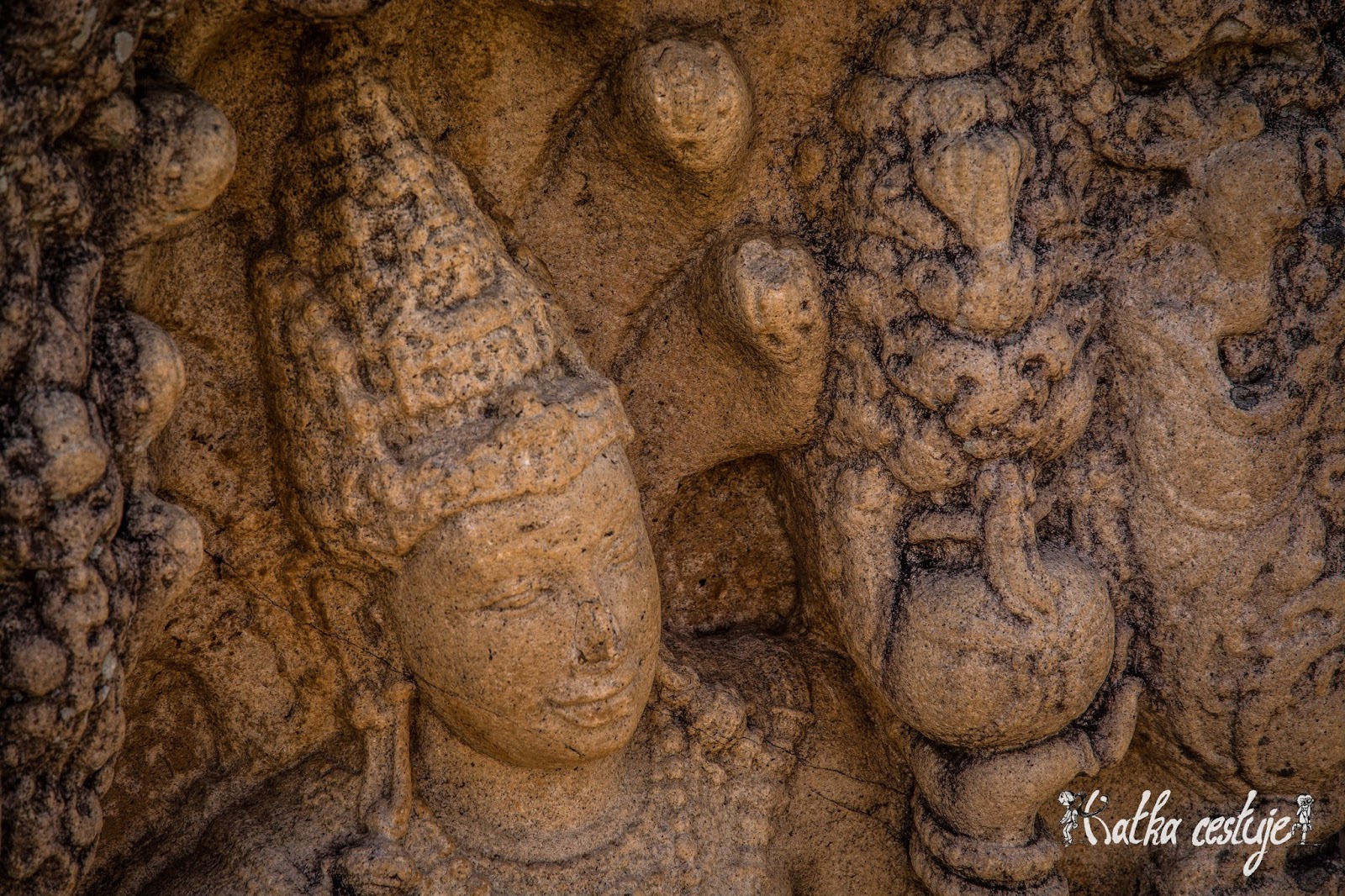 Ještě zajímavější je ale Moonstone II., k němuž se musíme vypravit trochu mimo hlavní cesty do zarostlé džungle. Doprovází nás místní toulavý pejsek, kerý je tak milý, že to musí být nějaký převtělený mnich :-). Tento kámen je podle nějakého slavného profesora nejhezčí a nejopomínější měsíční kámen na Srí Lance.