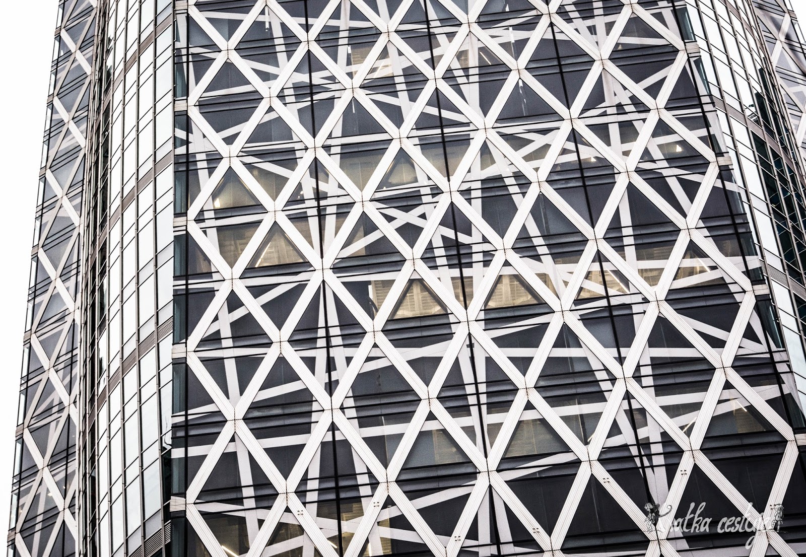 Mrakodrapů je v Tokiu asi tolik jako stromů v lese. A protože je tu lidí jako mravenců, tak jediná možnost, jak je sem všechny nacpat je stavět všechno pořádně do výšky, tedy až do nebe. Díky tomu je to tu opravdový mrakodrapový ráj, který oceňuje i naše neodborné architektské oko. Další zastávkou na dnešní trase je tedy slavná budova Cacoon Tower. Špičku pavoučího mrakodrapu vidíme už zdálky, prokličkovat se ale až přímo k ní se ukazuje trochu složitější, než jsme čekali. Je tu všechno tak strašně na husto, že vzdálenost, kterou by v evropském městě dělily dvě křižovatky tu komplikují desítky odboček, uliček, obchodních komplexů a sedm přechodů. Prodírání se tokijskou džunglí je ale zážitek sám o sobě, a tak si tuto nečekanou procházku náležitě užíváme. Cestou míjíme i dělníky, kteří opravují silnici a místo klasických oranžových kuželů tu jsou podél silnice rozmístěny kočičky Kitty! Tak to jo! Tomu říkám roztomilá silniční rekonstrukce :-). Jak později zjišťujeme, oranžové kužely v Japonsku obecně nemají v lásce a nahrazují je všemožnými dalšími zvířatky od delfínků a opiček až po zajíčky. A věřte, že to není kvůli dětem. V tomhle Japonci prostě nestárnou.