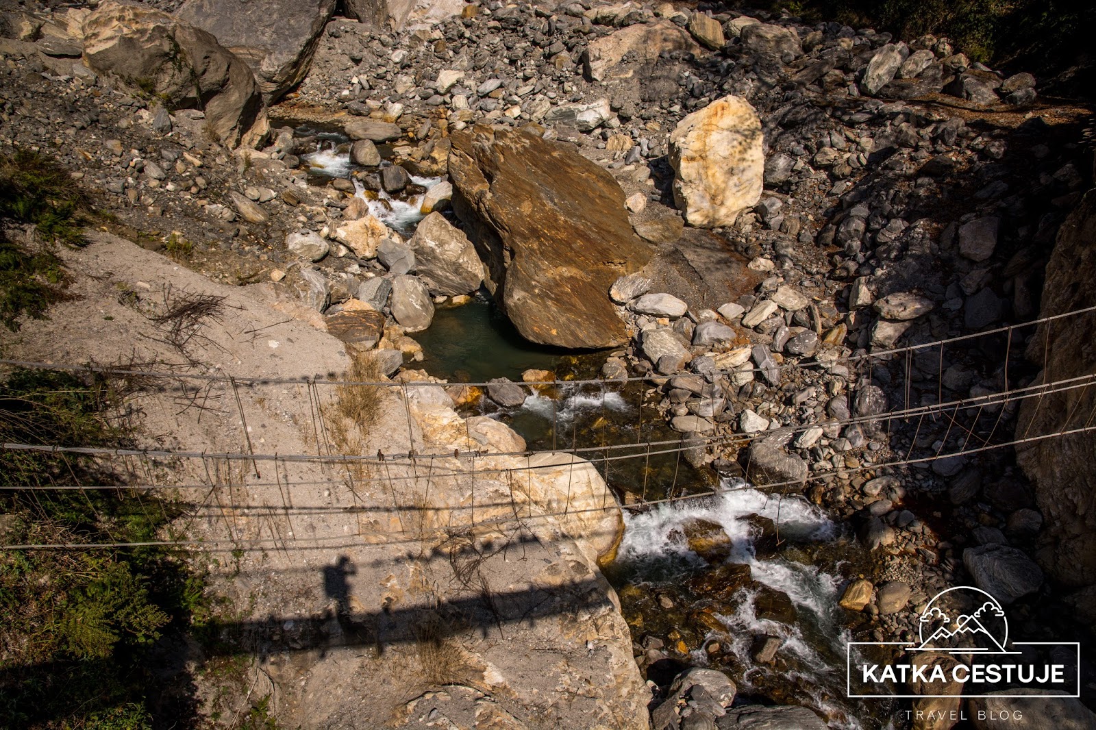 Tohle vás probere mnohem líp než studená sprcha. Prostě magie! Po snídani hned vyrážíme dál, dnes nás čeká spousta dalších sešupů a výšlapů, během kterých se už napojíme na hlavní trasu treku Annapurna Sanctuary vedoucího do základního tábora Annapurny. Dnešek bude vlastně taková spojovací trasa, trošku méně turistická a za mě jedna z nej částí treku (pokud se tak rozlišná krajina dá nějak porovnávat). Většinu cesty procházíme malými vesničkami, lodgí je tu jen minimum a my tak krásně vidíme, jak tu lidé doopravdy žijí. Hned na začátku pořádně klesáme do vesničky Chuile, kde na nás okamžitě mocně dýchne pravá rurální atmosféra horského života Gurungů.