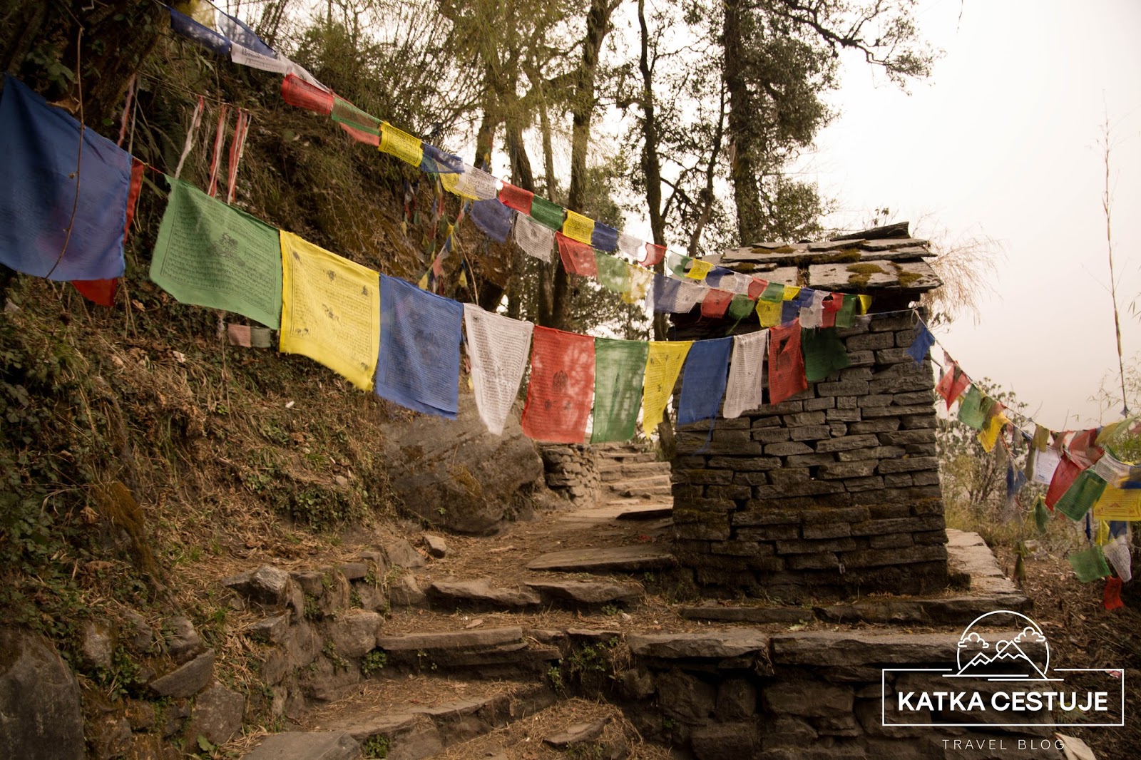 Uprostřed mraků a pokřivených stromů najednou přicházíme k posvátné buddhistické svatyni Baraha temple, kde mysticky vlají v mlze modlitební praporky. Tradice věšení těchto praporků sahá až do starověkého Tibetu, Číny a Persie. Vždycky mají těchto pět barev, jejichž pořadí je velmi důležité: modrá symbolizující nebe, bílá představující vzduch, červené oheň, zelená vodu a žlutá zemi.