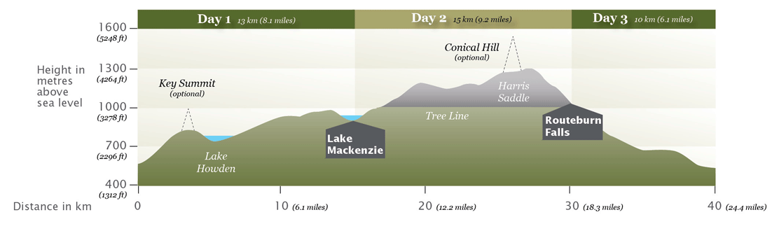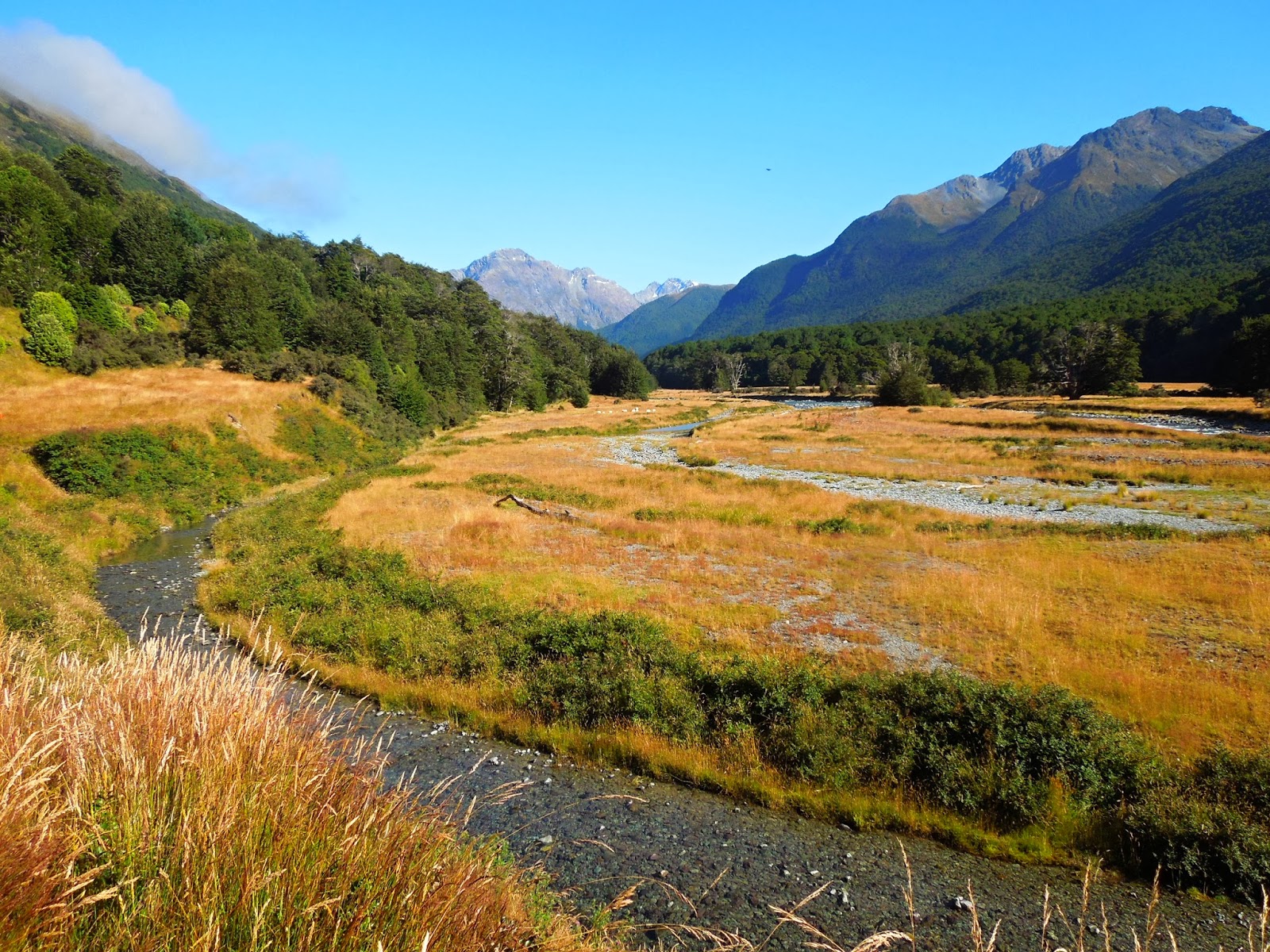 Jeho velkou nevýhodou ale je, že je jednosměrný, tzn. netvoří okruh. Tudíž musíme vyřešit problém, jak se dostat z jeho konce na jeho začátek, kde budeme mít auto. Na jihu Nového Zélandu je dopravní síť opravdu hodně řídká a jediná silnice, která začátek a konec Routeburnu propojuje má přes 300 km. Protože se nám nechtělo utrácet balík peněz za autobus provozovaný společností, která na těchto převozech rýžuje (to je jedna z věcí, kterou Novozélanďani opravdu umí – rýžovat na turistech), tak jsme se rozhodli si track prodloužit o další – Caples, který má dalších 28 km a náš pobyt v novozélandské divočině tak natáhne na celé 4 dny. V brožurce jsme se ale dočetli, že je to mírný a easy track linoucí se údolím a z jeho konce je to k našemu autu už jen zhruba hodina cesty, kterou jsme se rozhodli stopovat.