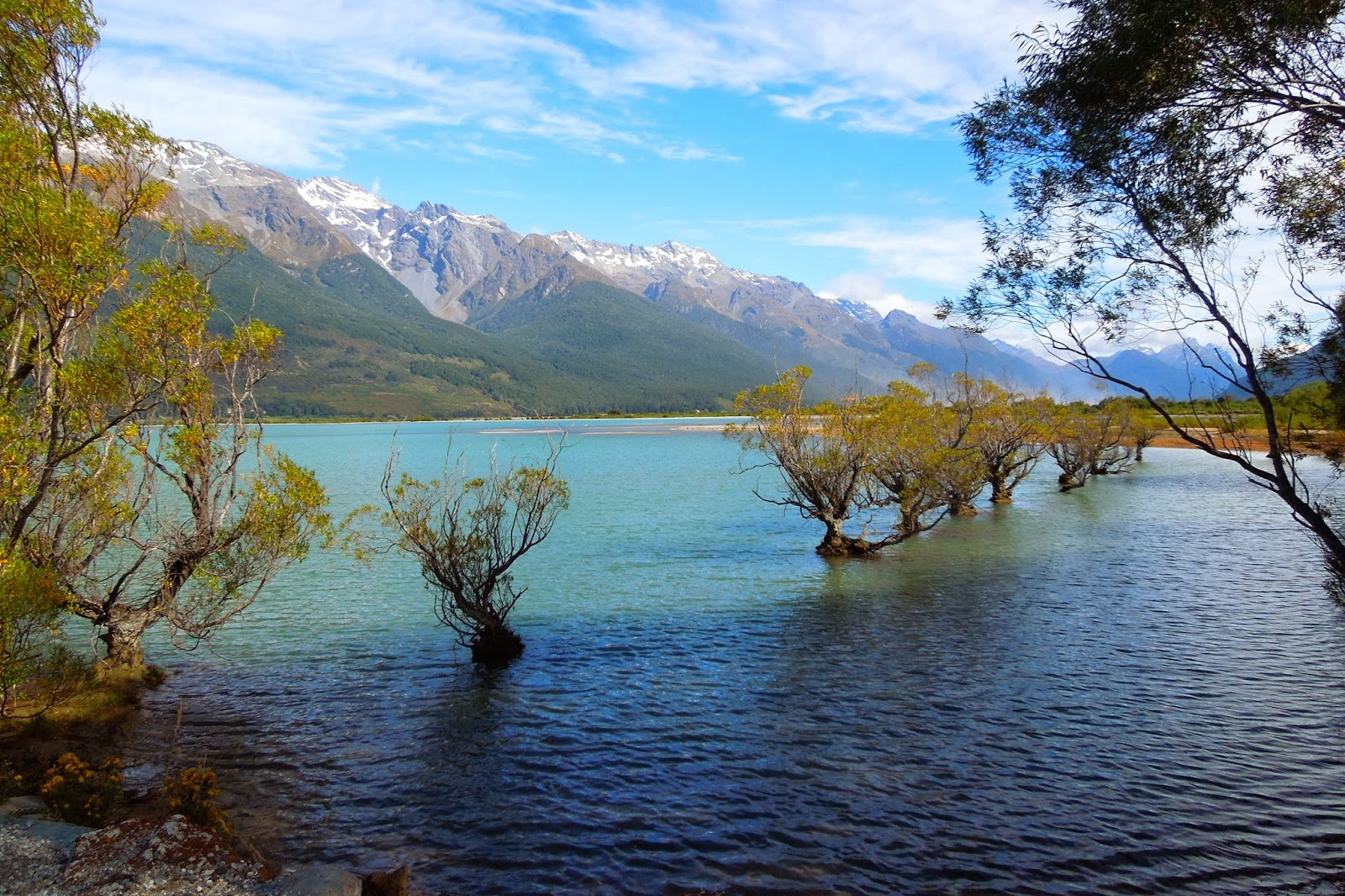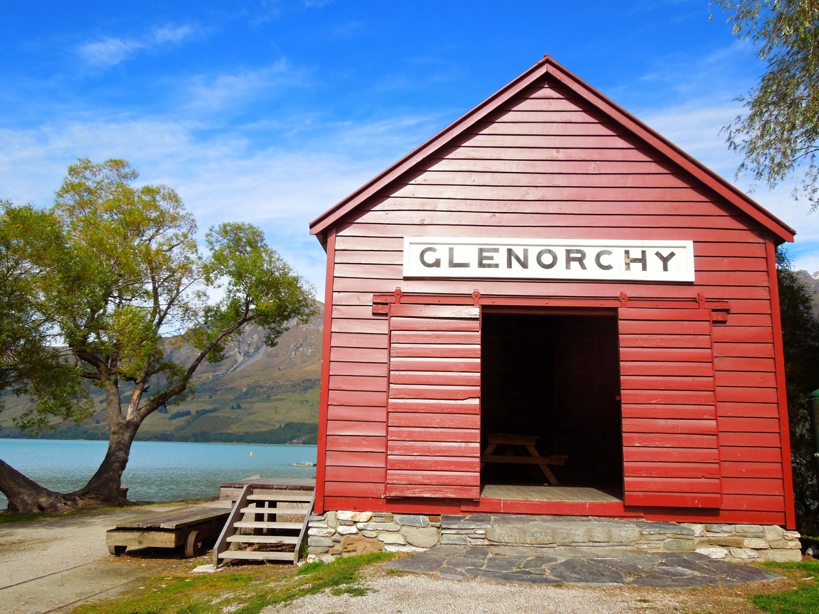 V pátek večer jsme si tedy v Queenstownu v DOC centru vyzvedli naše hut passy – potvrzení, že máme zaplacený nocleh na horských chatách) a vyjeli s naším novým autem (pokřtěným jménem Subárek) na 45 km dlouhou cestu podél jezera Wakatipu do městečka Glenorchy (silnice sem byla vybudovaná teprve až v roce 1975, do té doby bylo zcela závislé na lodní dopravě po jezeře). Tady jsme si dali výbornou pizzu s mořskými plody v místní stylové pizzerce a dojeli pak zbytek cesty k začátku plánovaného tracku.