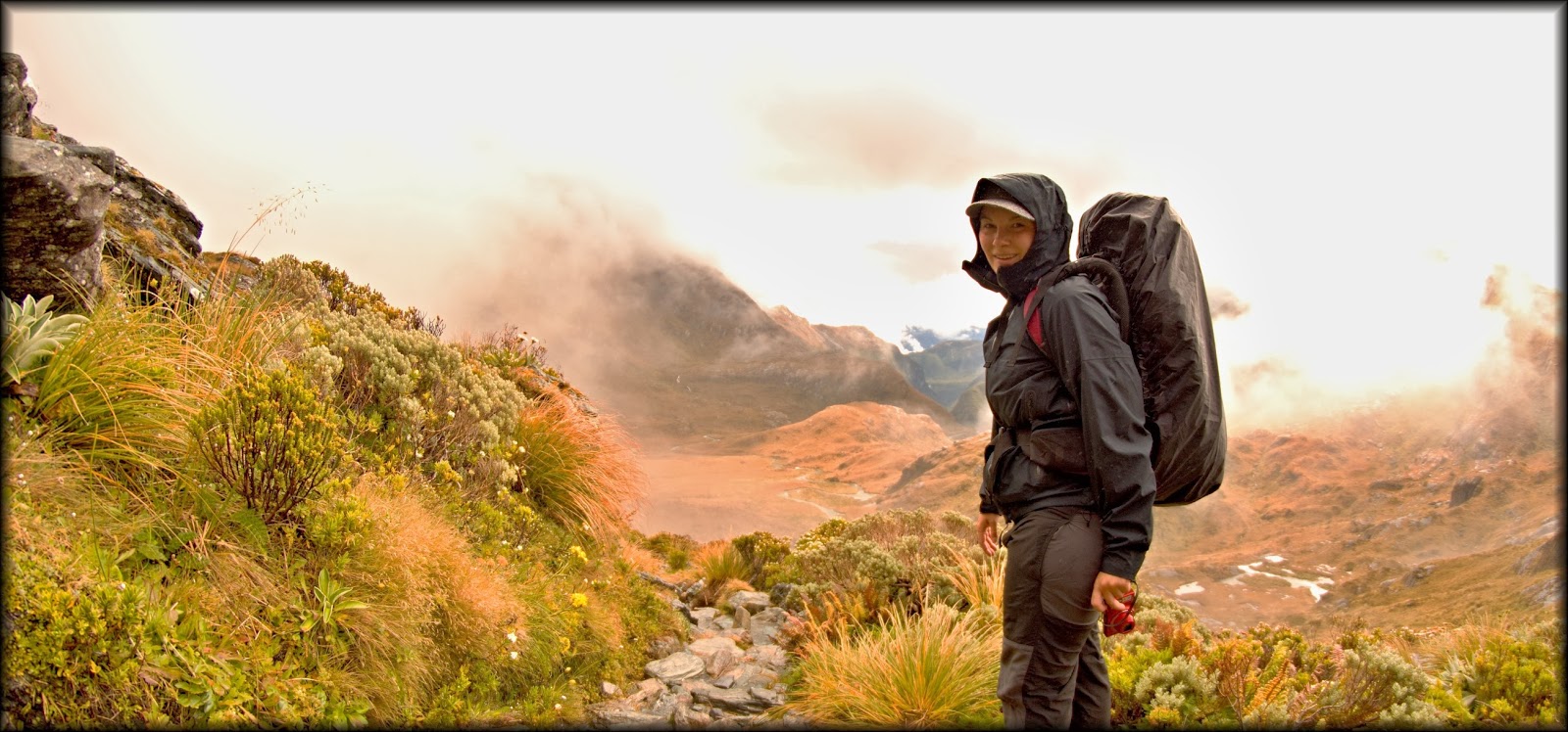 Další den ráno jsme si pěkně pospali a vyrazili až kolem poledne, kdy ustal prudký liják, který celou noc a dpoledne bušil do plechové střechy naší chaty. Hned ze startu jsme začali stoupat do Harris sedla, kterým začíná subalpinská část Routeburnu, tedy část, která je ve výšce nad hranicí lesa (většinou okolo tisícovky m.n.m.). Našim dnešním cílem byla chata u horského jezera Mackenzie, od kterého nás teď dělilo 12 km. Při tomto výstupu, kdy byla všude okolo mlha a mraky, se obloha na chvíli projasnila a nám se tak otevřel nádherný pohled na celé sedlo, kterému povalující se mraky pod námi neskonale slušely.