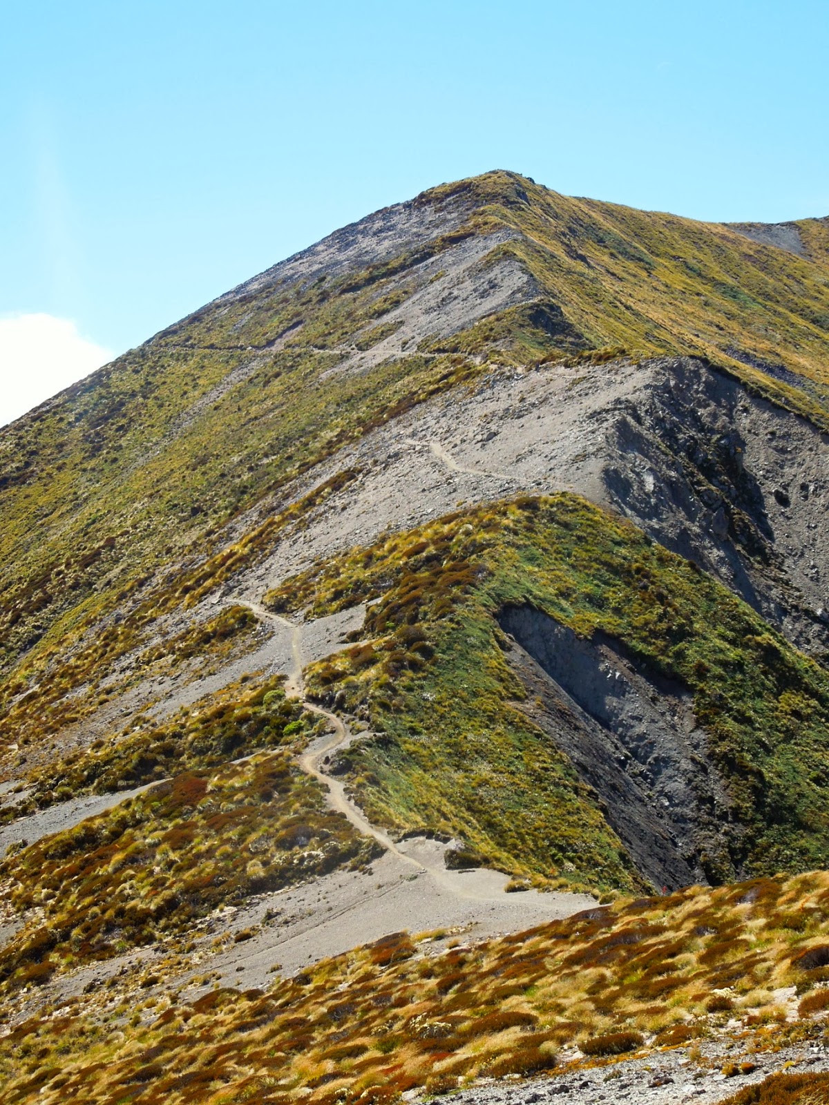 Dál jsme to bez světla neriskovali a po dnešním náročném blesko-výšlapu brzy po večeři zalezli do spacáků a za chvíli spali, jak dudci. To jsme ale byli v našem bunkroomu asi jediní, protože ráno nás přivítali naštvané pohledy ostatní spolunocležníků a po vyslechnutí rozhovoru z horního patra postele s větou „Did you manage to survive that terrible snoring?“ nám bylo jasné, o co jde. Tom v noci asi trochu chrápal. No jo, no – syndrom unavených :-). Po desáté (nikdy jsme nepatřili k těm, co opouští ráno chatu mezi prvníma) jsme se vydali vzhůru do hor, a to tedy doslova. Hned po prvních desítkách minut nás ohromil luxusní pohled na Mt. Luxmore a pěšinku po jeho hřbetu, která se těší na naše kroky.