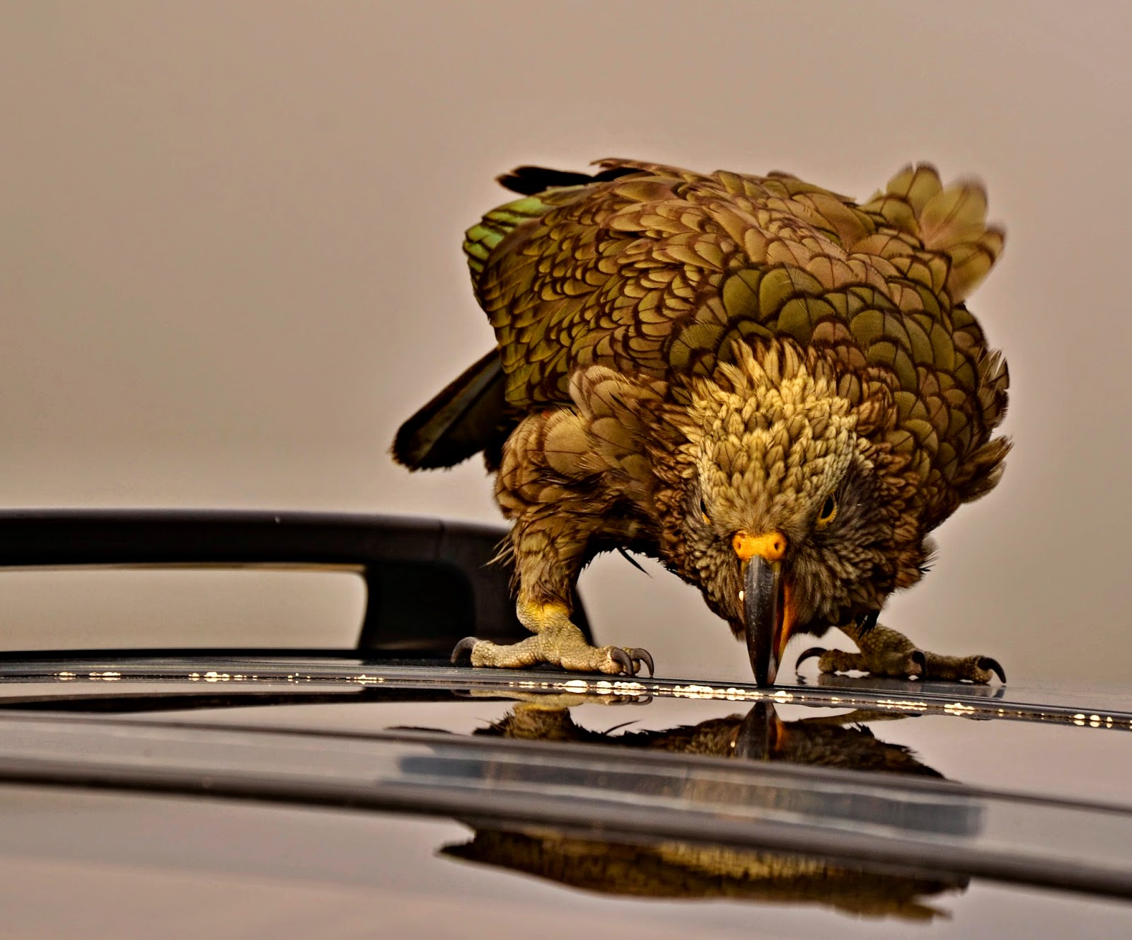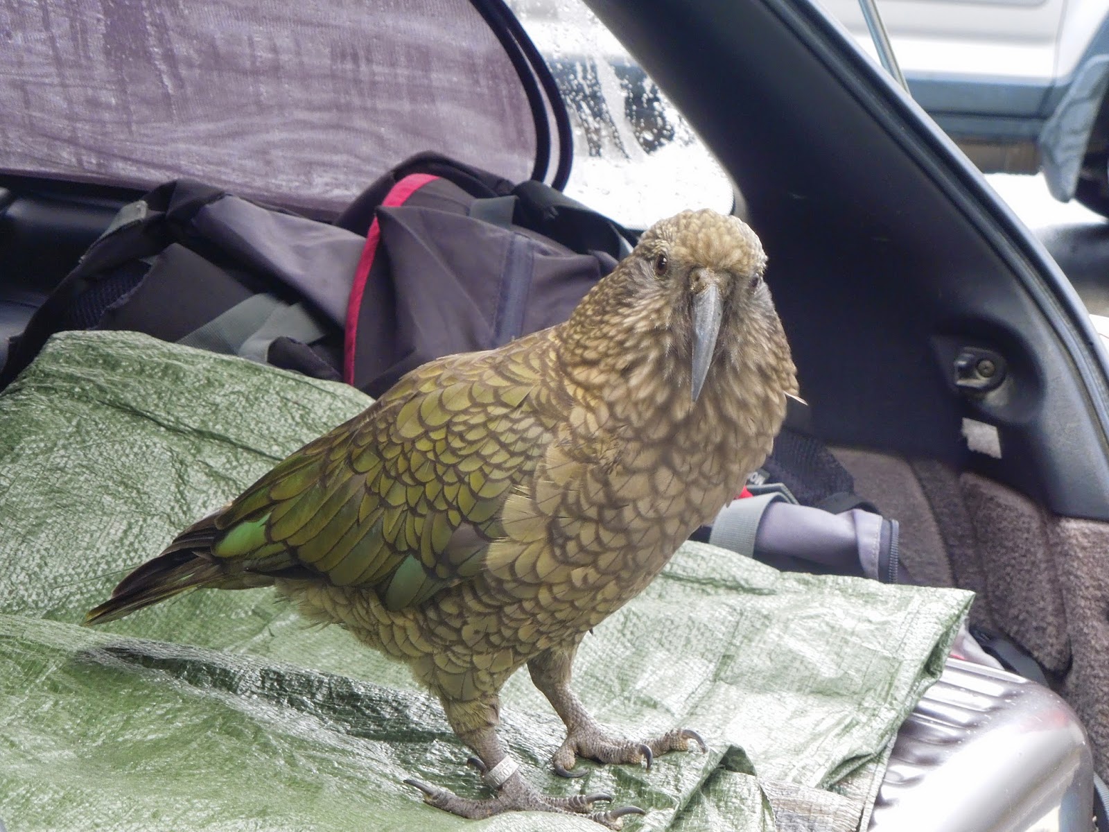Když poprvé v mé těsné blízkosti zašustili kea křídla a tento obrovský pták dosednul na parkovišti vedle mě, byl to mega zážitek. Tito ptáci se lidí vůbec nebojí a tak stačí nechat otevřený kufr a měli jsme ho za chvíli až v autě na zadním sedadle, asi se chtěl projet :). Skupince čínských turistů obsadili obě zpětná zrcátka a kapotu. Na dalším parkovišti (u výhledu na Otira viadukt) na nás čekal už celý kea gang, tedy partička asi 15 papoušků, kteří se tu turistům starali o zábavu, tedy přesněji řečeno o auta. Z dosud ani vědci nevysvětlitelných důvodů je totiž nejoblíbenější zábavou keů ožírání aut, mezi největší lahůdky patří stěrače a veškeré pryžové části, těsnění, atd. Na našem autě jim zachutnal i oprýskaný lak nebo kapuce tomášovi bundy. Největší sranda byla, když jsme odjížděli z parkoviště a na našem autě bylo zrovna asi 7 papoušků a ještě několik set metrů je slyšíte na střeše, jak se vezou než rozpřáhnou křídla a vrátí se zpátky…