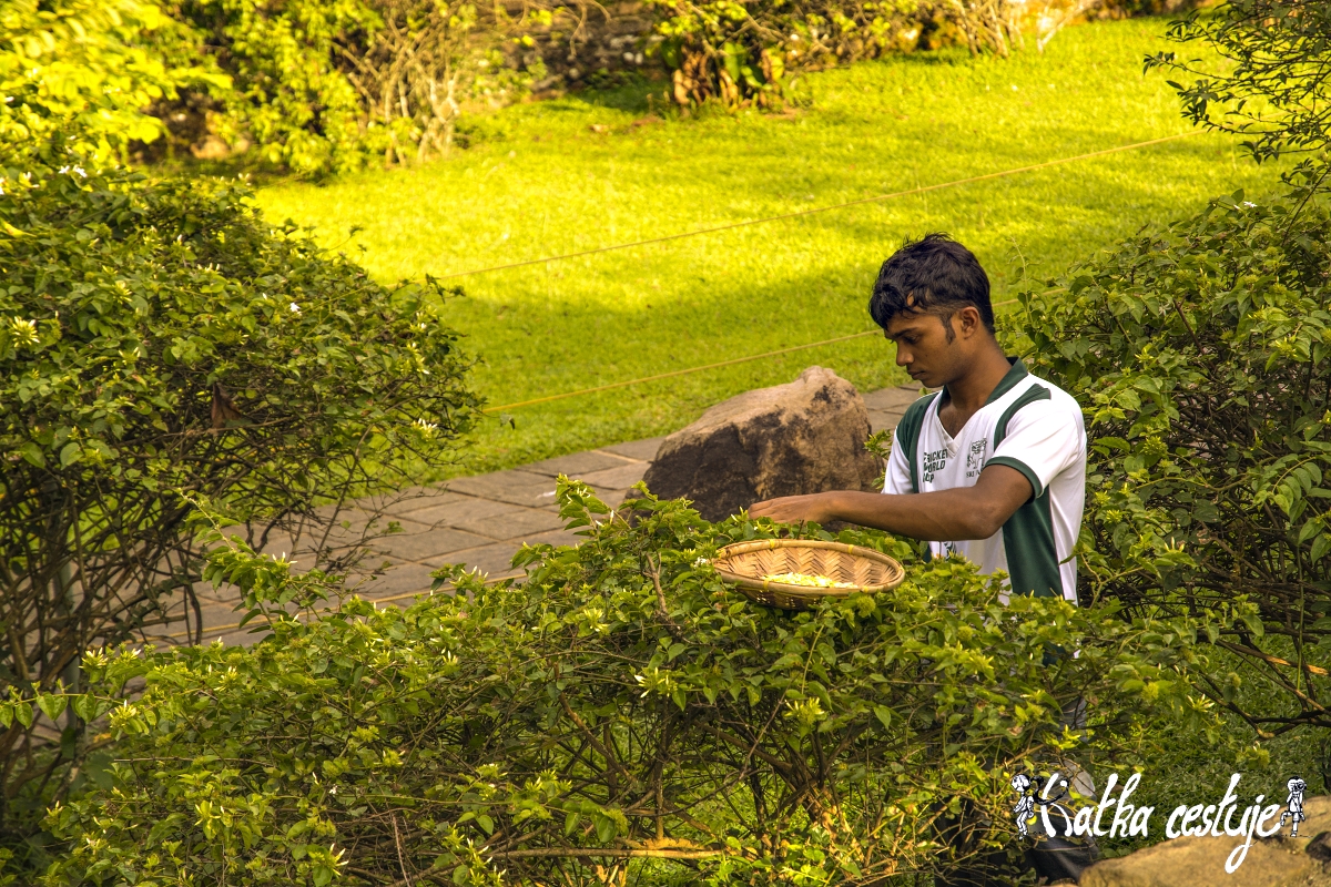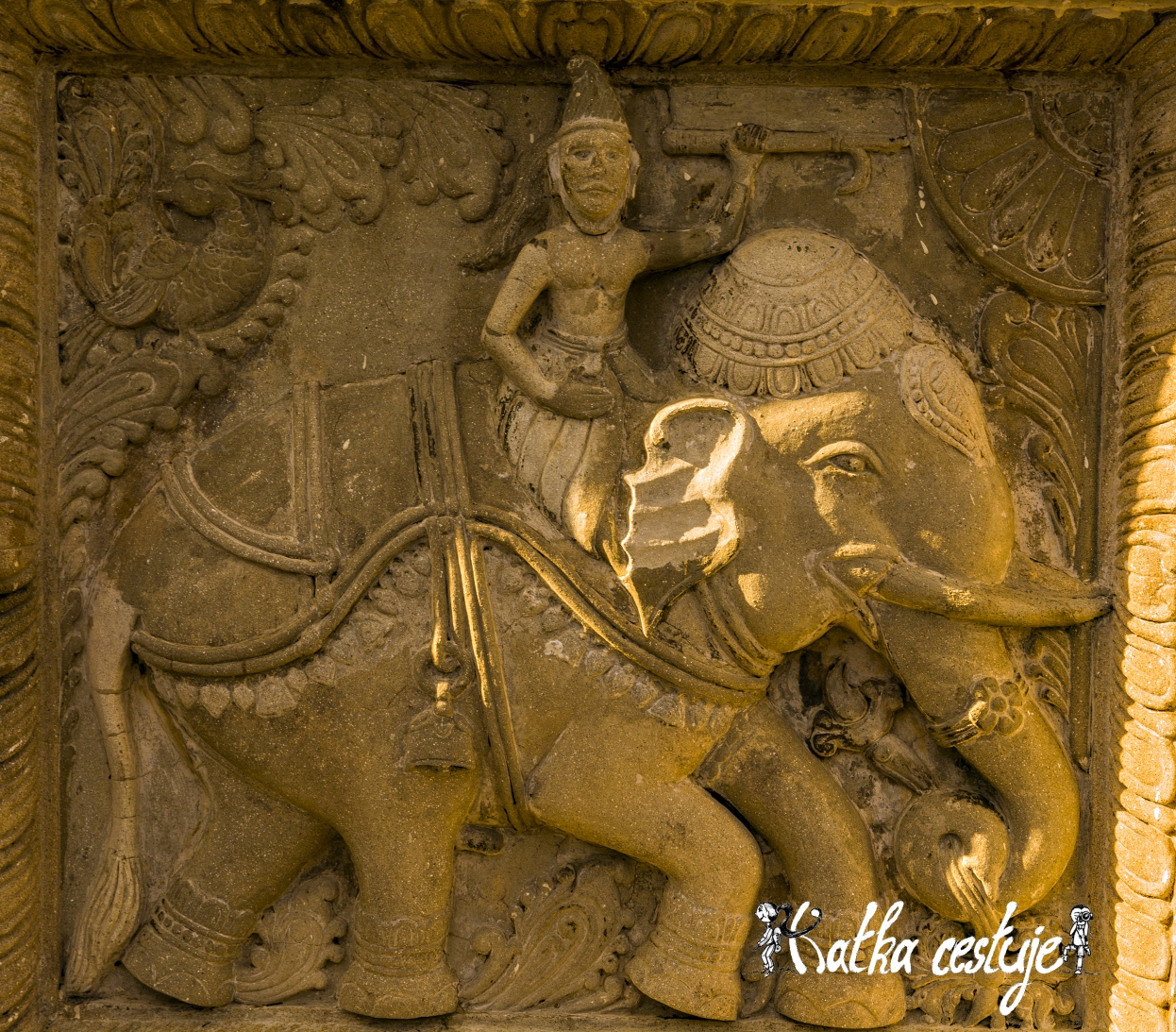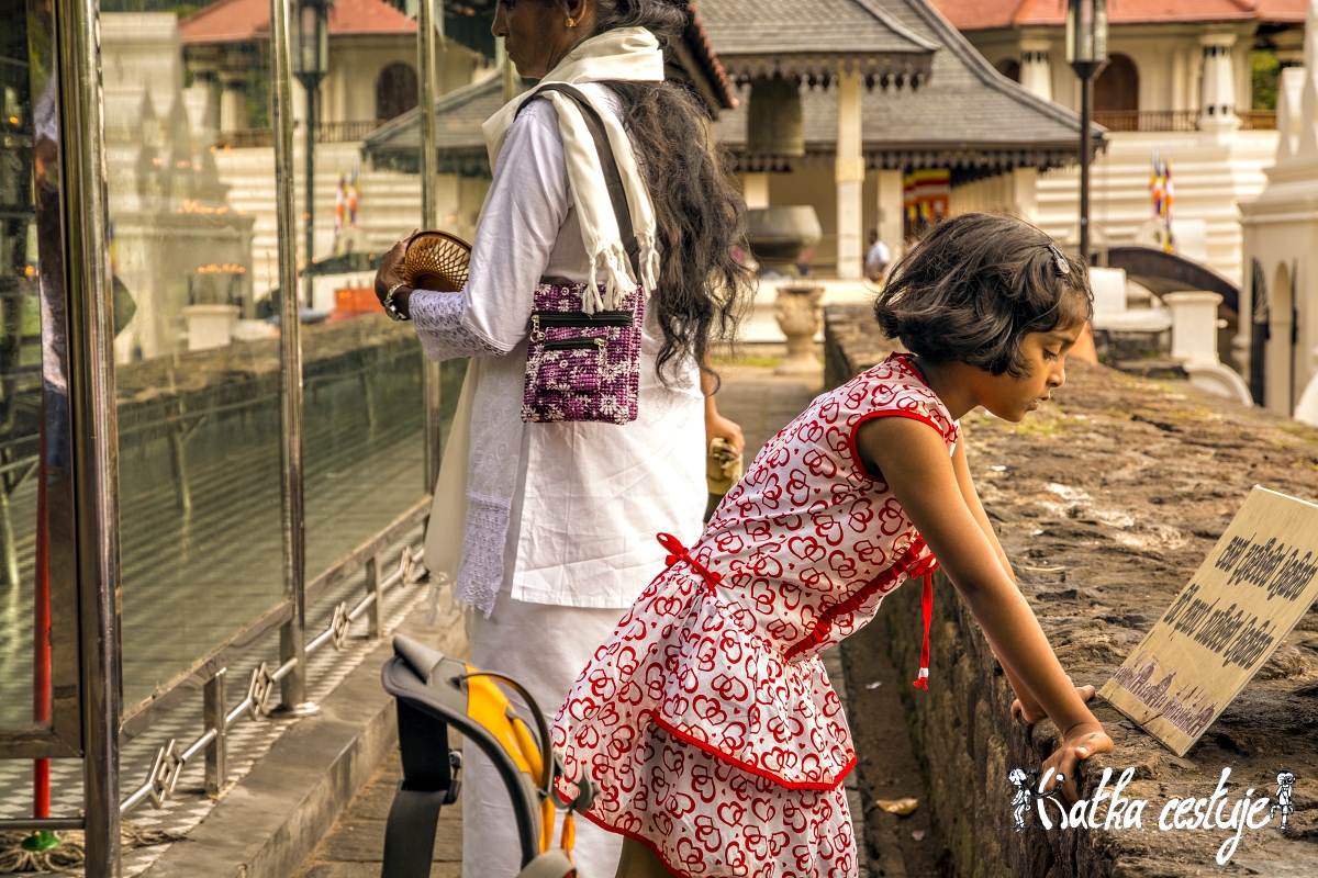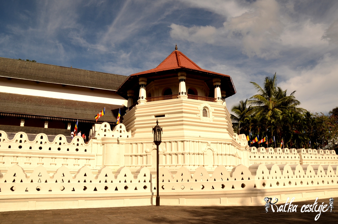 Další částí chrámu je Alut Maligawa, síň plná soch Buddhy a slonních klů, které jsou dary od jiných zemí. Série obrazů na stěnách síně znázorňuje příběh Buddhova zubu a mně silně připomíná obrazy křížové cesty Ježíše Krista, které jsou v českých kostelích.