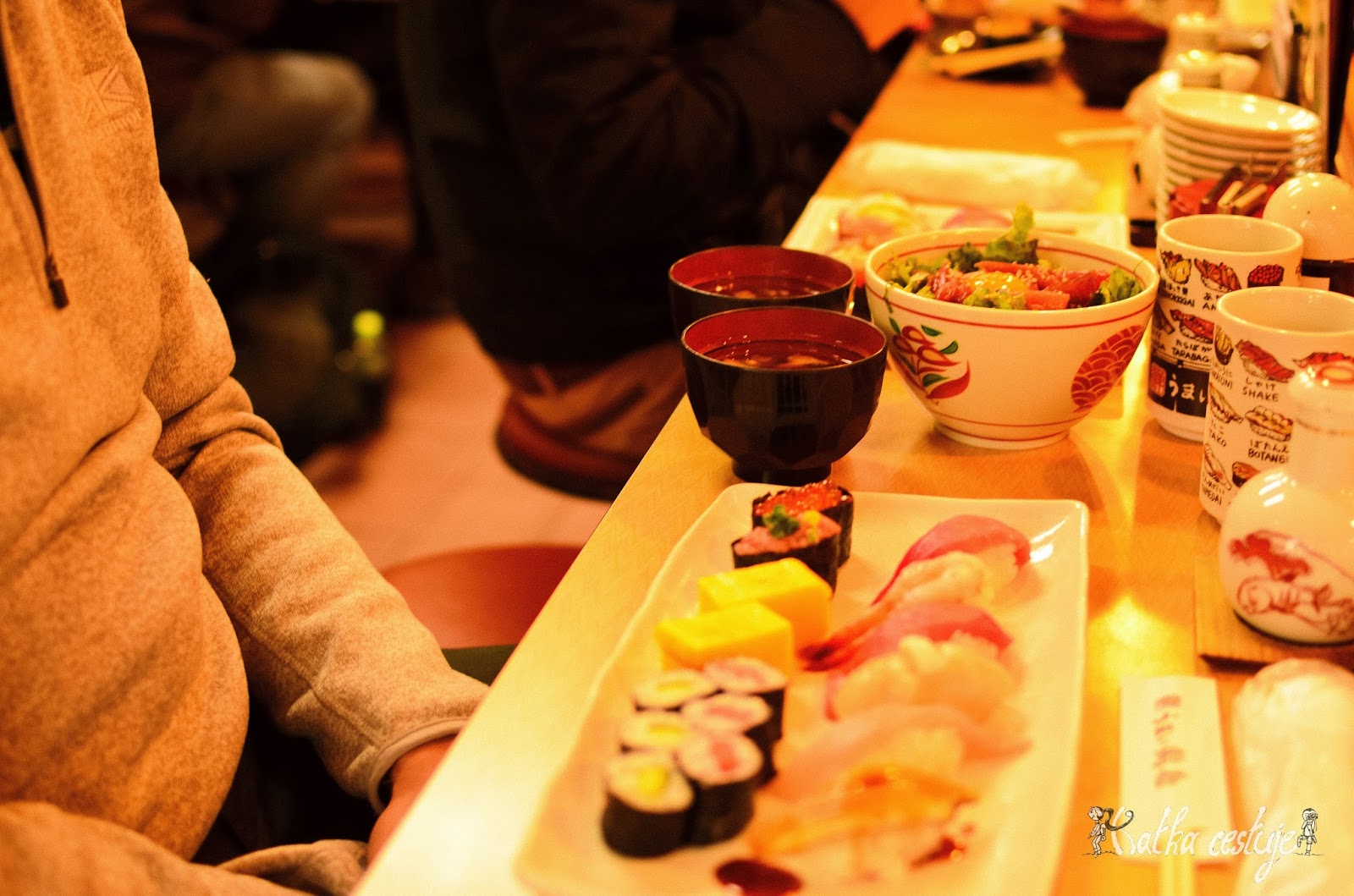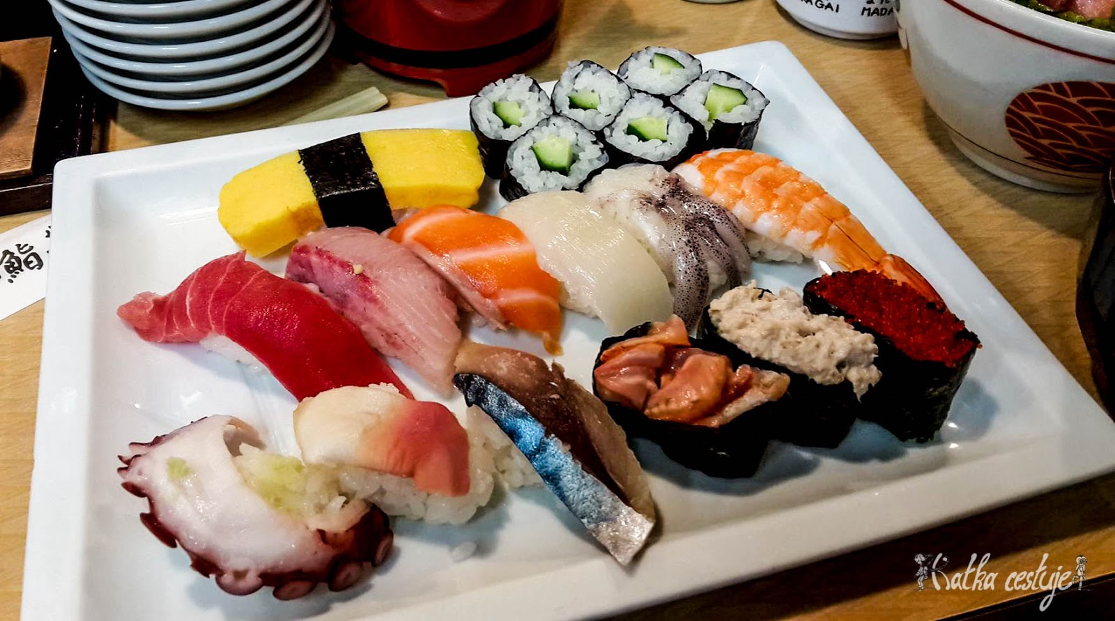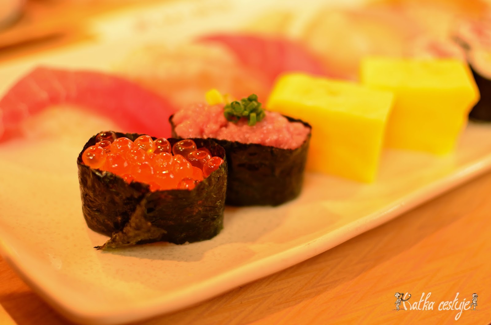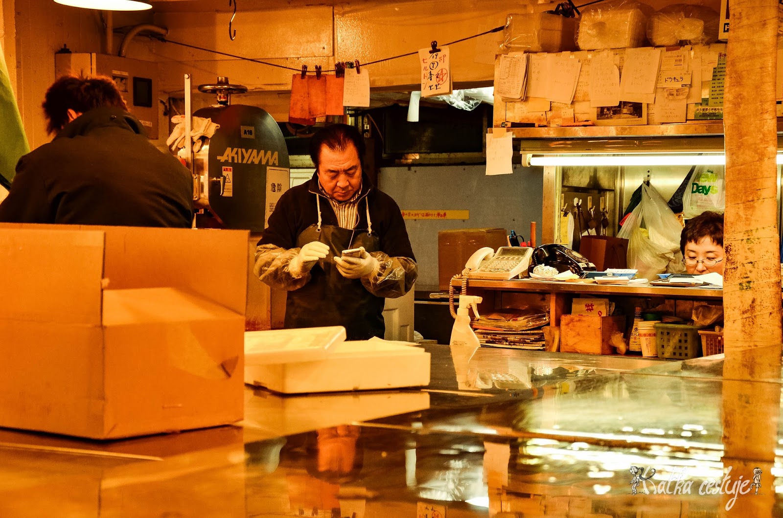 Druhý den v Tokiu nás probouzí zvonění budíku o trochu dřív, než bychom si přáli. Chystáme se totiž na návštěvu rybího trhu Cukidži (angl. Tsukiji), jehož brány se pro turisty otevírají v 9 hodin, a tak už o půl osmé opouštíme hotelový pokoj, aby nám tato událost neutekla. Do jednácti je už totiž po všem. Cukidži je nejen největší trh s rybami a mořskými potvorami v Tokiu, ale díky dvou tisícům tun prodaných mořským plodů denně také největším na světě. Protože já i Tom mořské plody milujeme, toto legendární místo je jedním z našich velkých tokijských must do. Natěšení ráno vystupujeme na stanici metra Tsukiji a podle všudypřítomných mapek směřujeme k slavnému rybímu trhu, který se má v listopadu 2016 přesouvat do nových moderních prostor, čímž zřejmě přijde i o svou legendární ponurou atmosféru. Tohle prostě nesmíme propásnout, a tak spěcháme po rušné ulici, co to dá. Na místo dorážíme deset minut před devátou a stoupáme si do fronty, kterou hlídá ostraha. To aby náhodou nějaký turista neproklouzl dovnitř dřív než je povoleno. Cukidži je totiž hlavně místo obchodu, kam si každé ráno chodí vybírat ty nejkvalitnější suroviny nejlepší šéfkuchaři z Tokia a neplatící návštěvníky motající se s foťáky mezi jejich produkty tak prodejci i zákazníci jen více či méně trpělivě snášejí.